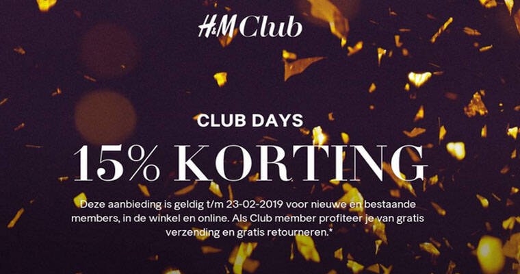 ✔ ontvang 15% korting op je H&M aankopen tijdens de Club Days
