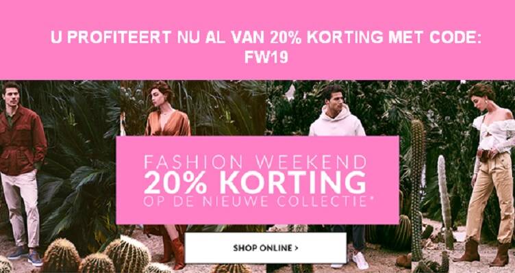 ✔ het Fashion Weekend duurt van donderdag 4 tot en met zondag 7 april 2019 en vindt plaats in de winkels en online via de code FW19